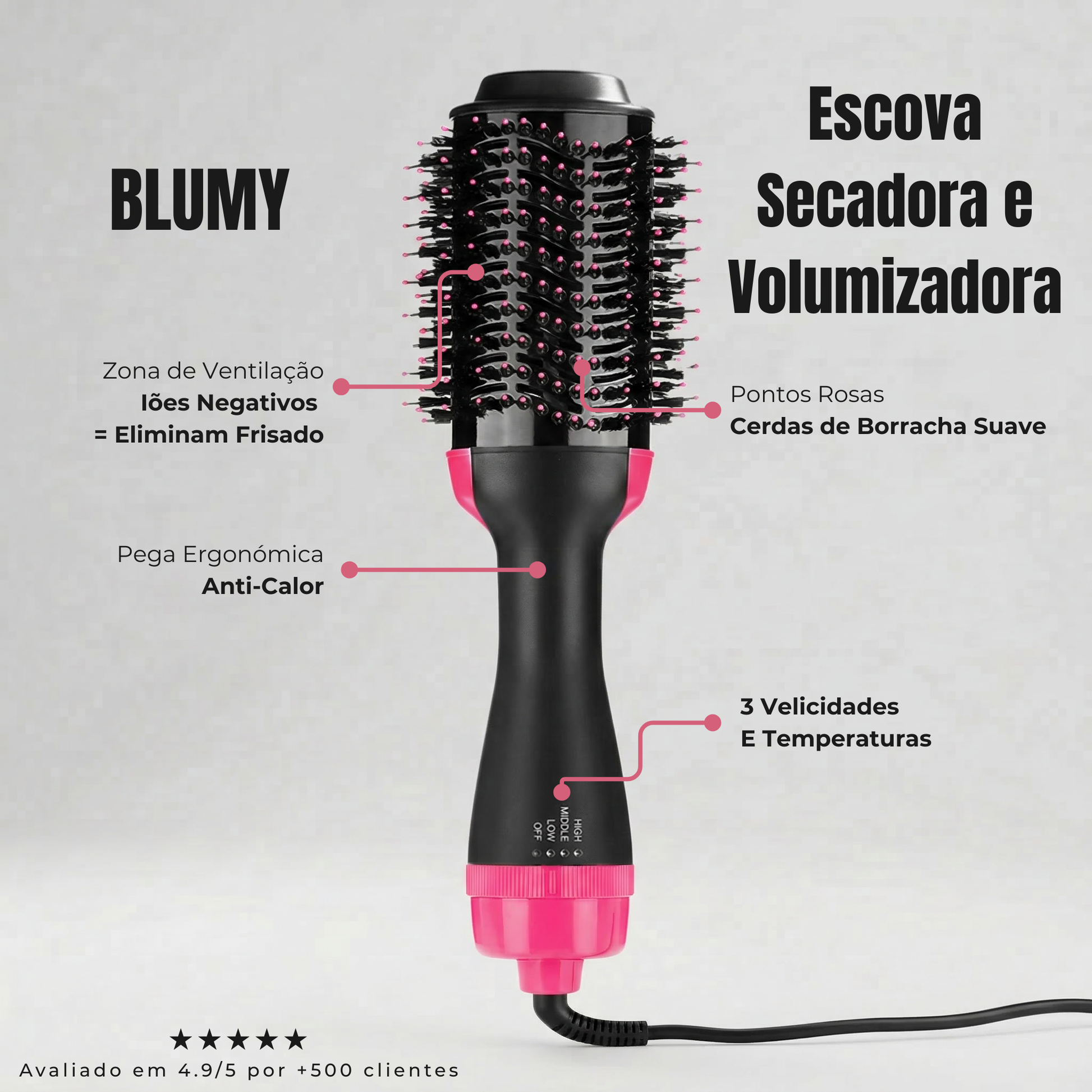 BLUMY Escova Secadora Volumizadora 3 em 1